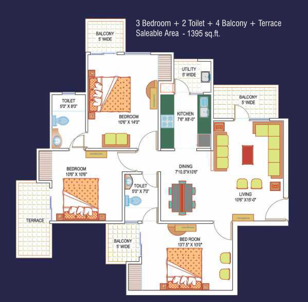 La Residentia has been aesthetically designed with an emphasis on the free flowing of air in the apartment. It is planned in a manner so as to keep maximum fresh air circulation in every apartment. The rooms are naturally lit due to the uniform distribution of sunlight. Due to optimal usage of space, the rooms are functionally motivated. The construction mode adheres to the concept of Green buildings.